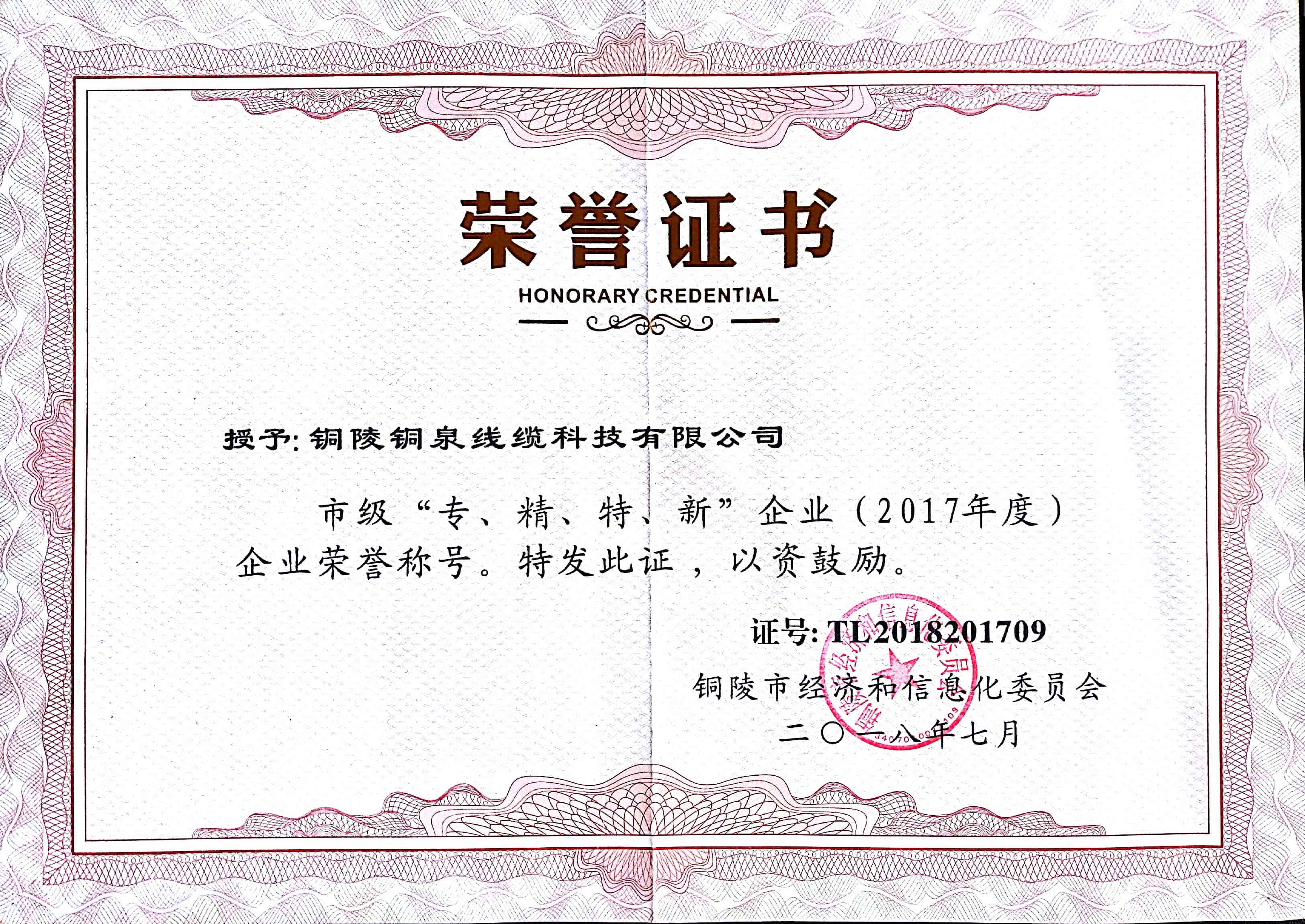 專精特新企業(yè)證書