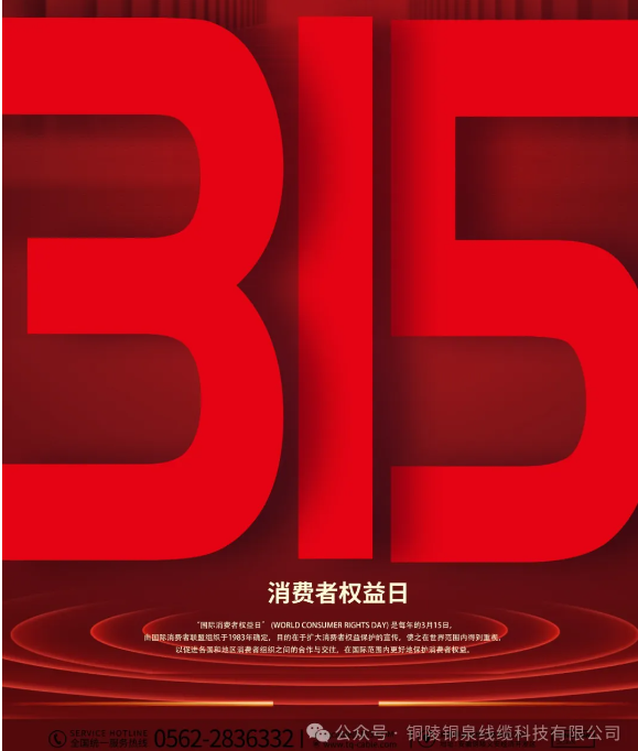 一年一度的315國(guó)際消費(fèi)者權(quán)益日如期而至,今年,中國(guó)消費(fèi)者協(xié)會(huì)將315主題定為“激發(fā)消費(fèi)活力”,旨在優(yōu)化消費(fèi)環(huán)境,推動(dòng)消費(fèi)從疫后恢復(fù)轉(zhuǎn)向持續(xù)擴(kuò)大。眼下,刺激消費(fèi)、激發(fā)活力,是經(jīng)濟(jì)發(fā)展的關(guān)鍵一步,在此背景下,切實(shí)保證消費(fèi)者合法權(quán)益變得愈發(fā)重要。銅泉線纜始終堅(jiān)守品質(zhì),始終秉承“以誠(chéng)拓市場(chǎng),用心鑄品牌”的經(jīng)營(yíng)理念,以匠心,贏誠(chéng)信;以責(zé)任,筑未來(lái)。315維權(quán)日我們不僅僅是參與者,更是責(zé)任的踐行者。在這個(gè)特別的日子里我們的承諾不會(huì)缺席。